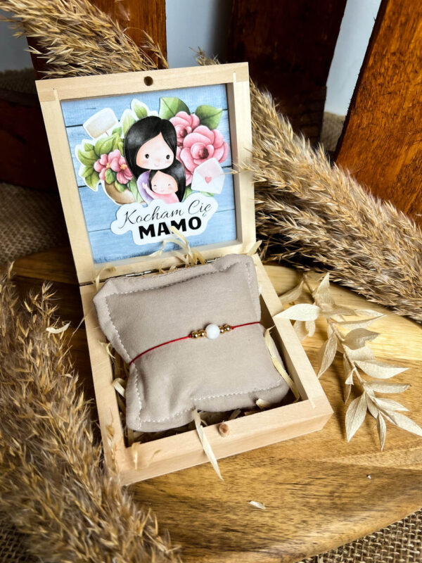Czerwona bransoletka z kamieniem księżycowym na Dzień Mamy – specyfikacja