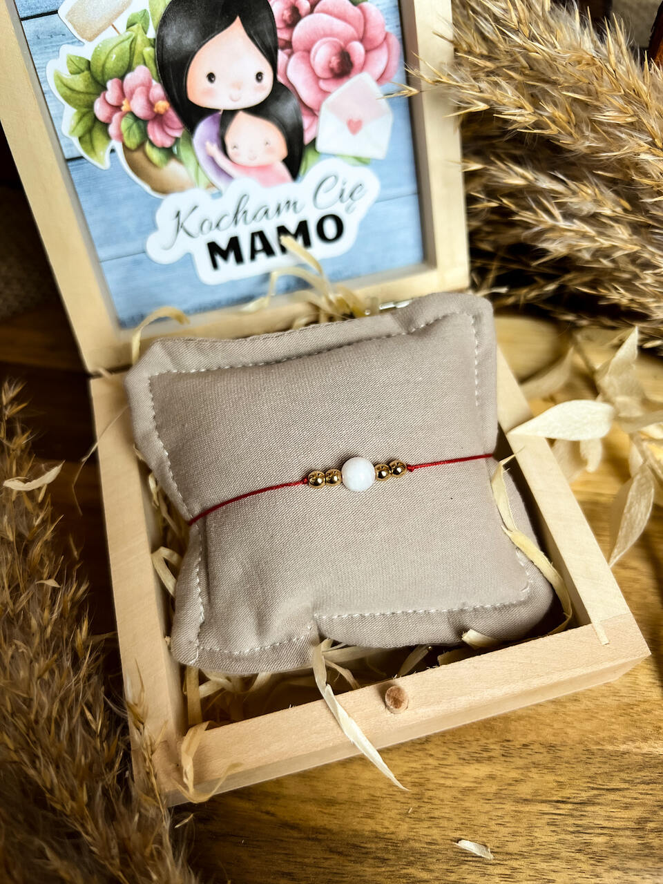 Czerwona bransoletka z kamieniem księżycowym na Dzień Mamy